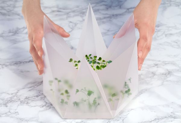 Дизайнер из Берлина и вовсе предлагает обойтись без почвы, воды и удобрений, а выращивать эко-зелень с помощью нейтрального желе из водорослей - агар-агар.