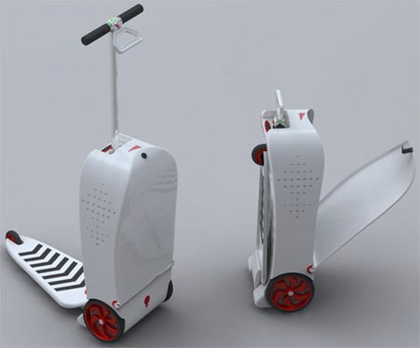 Аргентинский дизайнер Francisco Lupin создал чемодан-скутер, который выдерживает вес до 110 кг. Стоит отметить, что такой девайс требует постоянной подзарядки. Чемодан работает на двух электродвигателях, которым понадобится четыре 12 V батарейки. Заряда хватает приблизительно на два часа. Но детям хватит, чтобы поставить на уши весь аэропорт.
