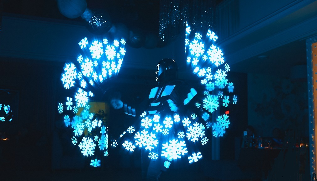 Пиксельное шоу: магические рисунки неоновыми инструментами в воздухе и телепортация Деда Мороза и Снегурочки на Землю — космически увлекательно!