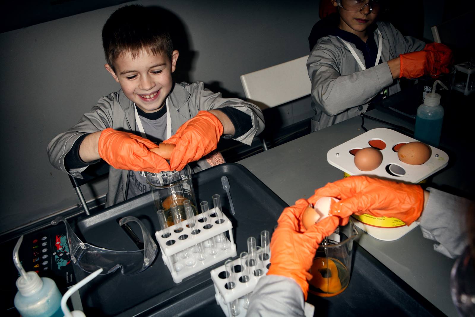 В «Умном Минске» главный принцип – дети всё делают своими руками. Таким образом, каждый ребенок вовлечен в процесс на 100%. Разумеется помогают ребятам настоящие молодые ученые - выпускники химфака, биофака БГУ.