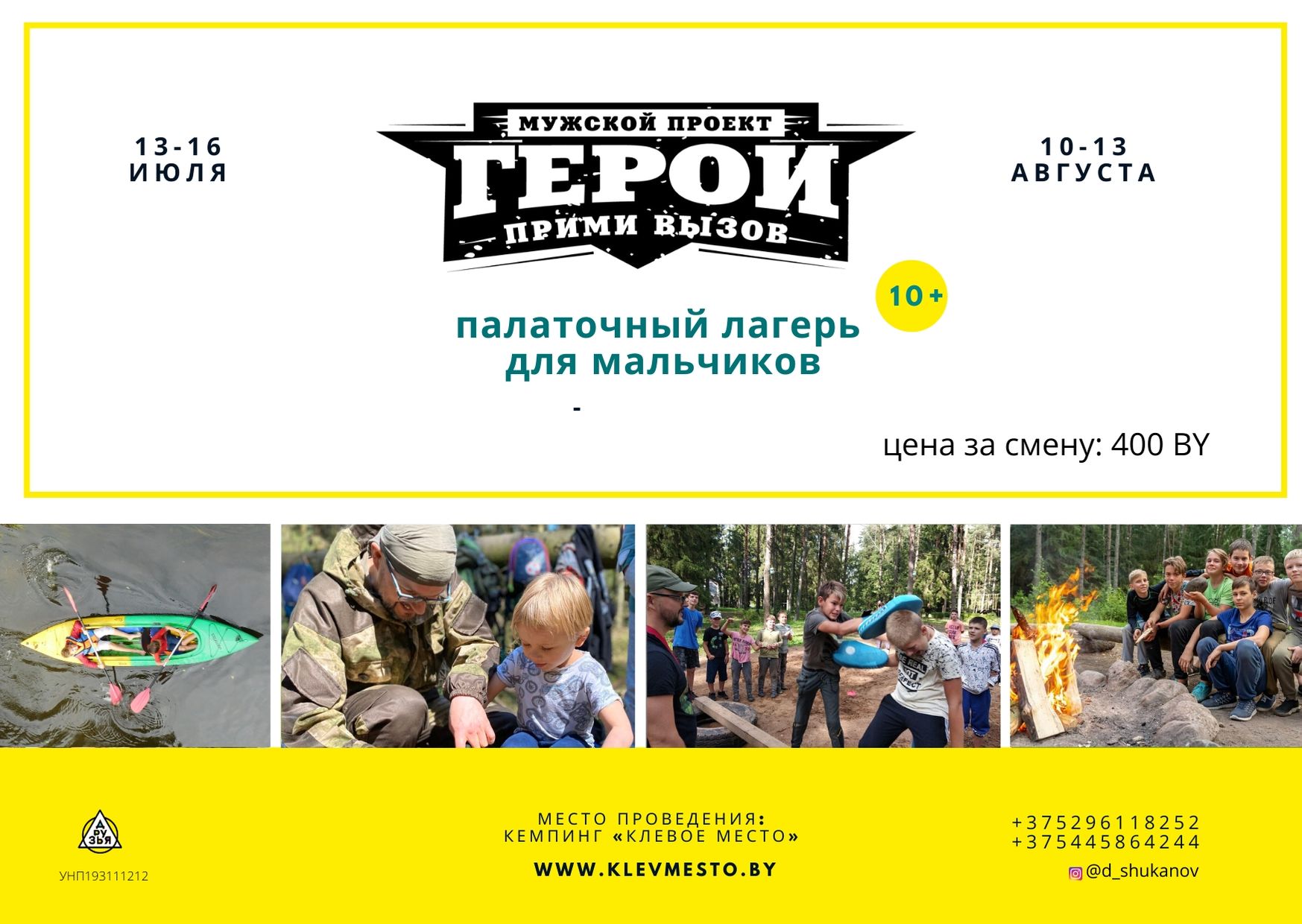 Палаточный выездной лагерь «Герои» для мальчиков от 10 до 16 лет. Смена 13-16 июля, 10-13 августа (кемпинг «Клевое место»).