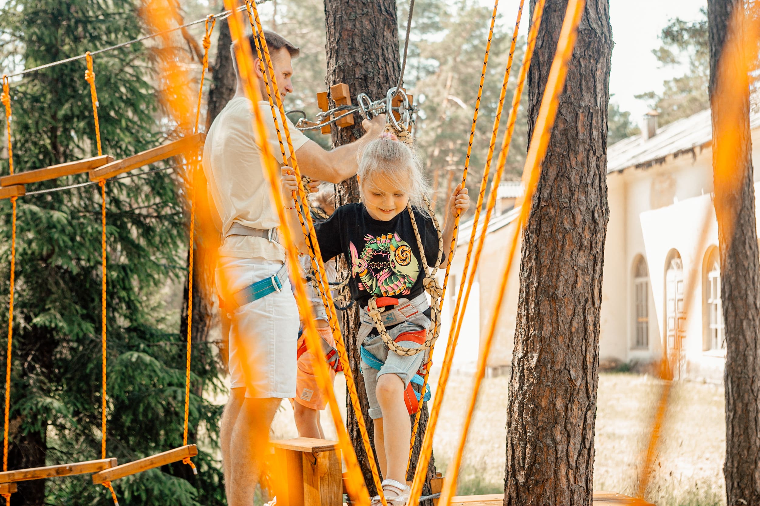 Для гостей подготовили веревочный городок на 5 трасс (ни одно дерево при строительстве активности не пострадало). Трассы были спроектированы по немецко-австрийским технологиям для детей и взрослых со всевозможными видами треков, тоннелей, лиан, контактной переправой и препятствиями (на верхних точках тропа достигает 8 метров!) Но, звучит не так страшно, как кажется: перед прохождением трасс гости в обязательном порядке проходят инструктаж и сопровождаются опытными инструкторами на всем пути маршрута, ну а самое главное, находятся под защитой непрерывной двойной страховки.