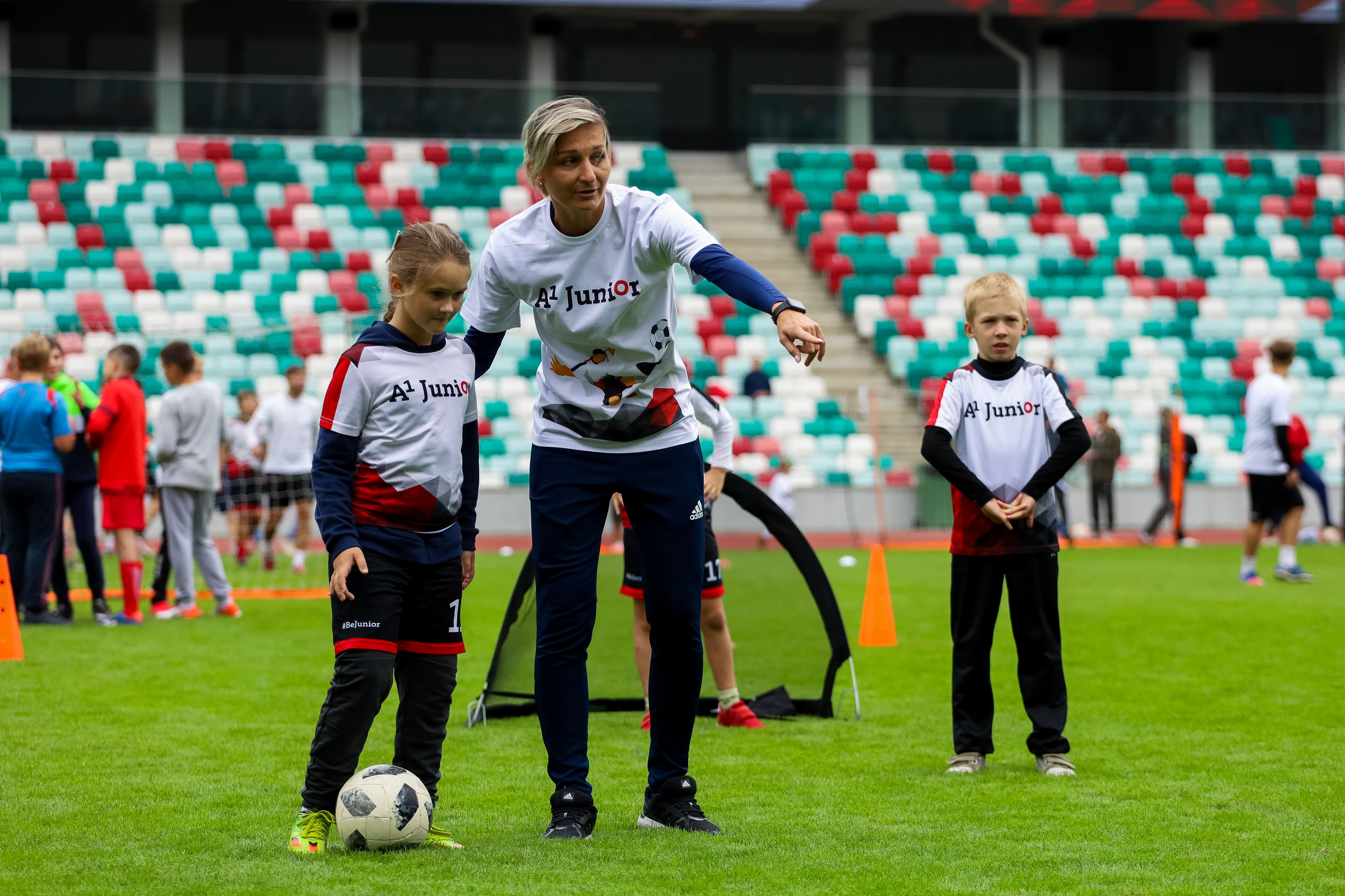 Кто-то убежал отрабатывать идеальный пенальти и точный пас, кто-то захотел показать класс в эстафете «Молниеносный нападающий», были и те, кто тренировал прыжки в высоту. Большинство же ребят разделилось на команды, чтобы сыграть в футбол под руководством опытных наставников «А1 Юниор».