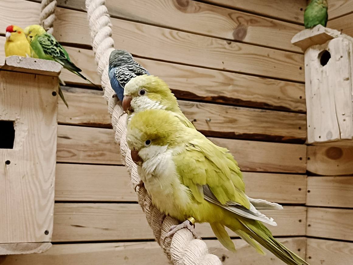 С 2020 года в Минске работает уникальный и единственный в городе островок счастья – «Попугайня». Здесь пара сотен ярких птиц шуршат, поют, ураганом проносятся над головами и с азартом едят с рук. Найти это место не составит труда: доезжаете до станции метро «Малиновка», выходите на сторону улицы Есенина, проходите вперед минуты две и встречаете большой плакат с попугаем. Спускаетесь в цокольное помещение, и вы на месте!