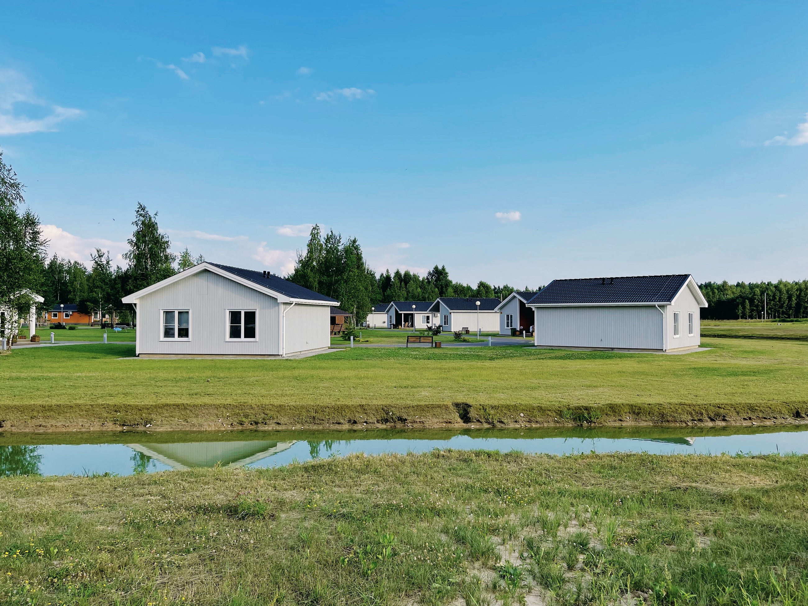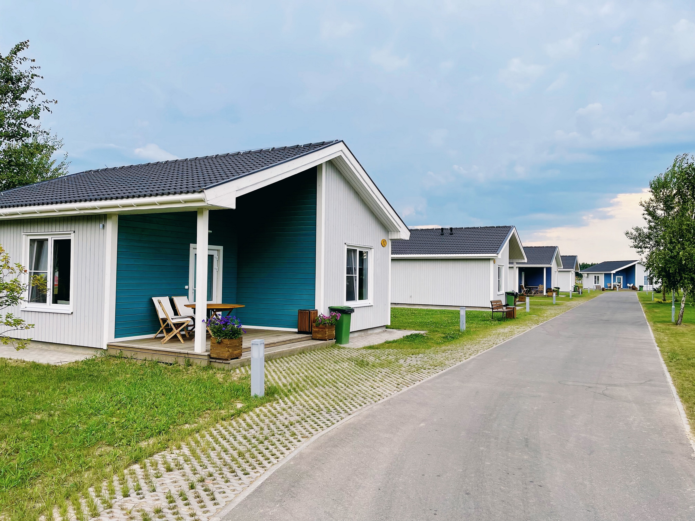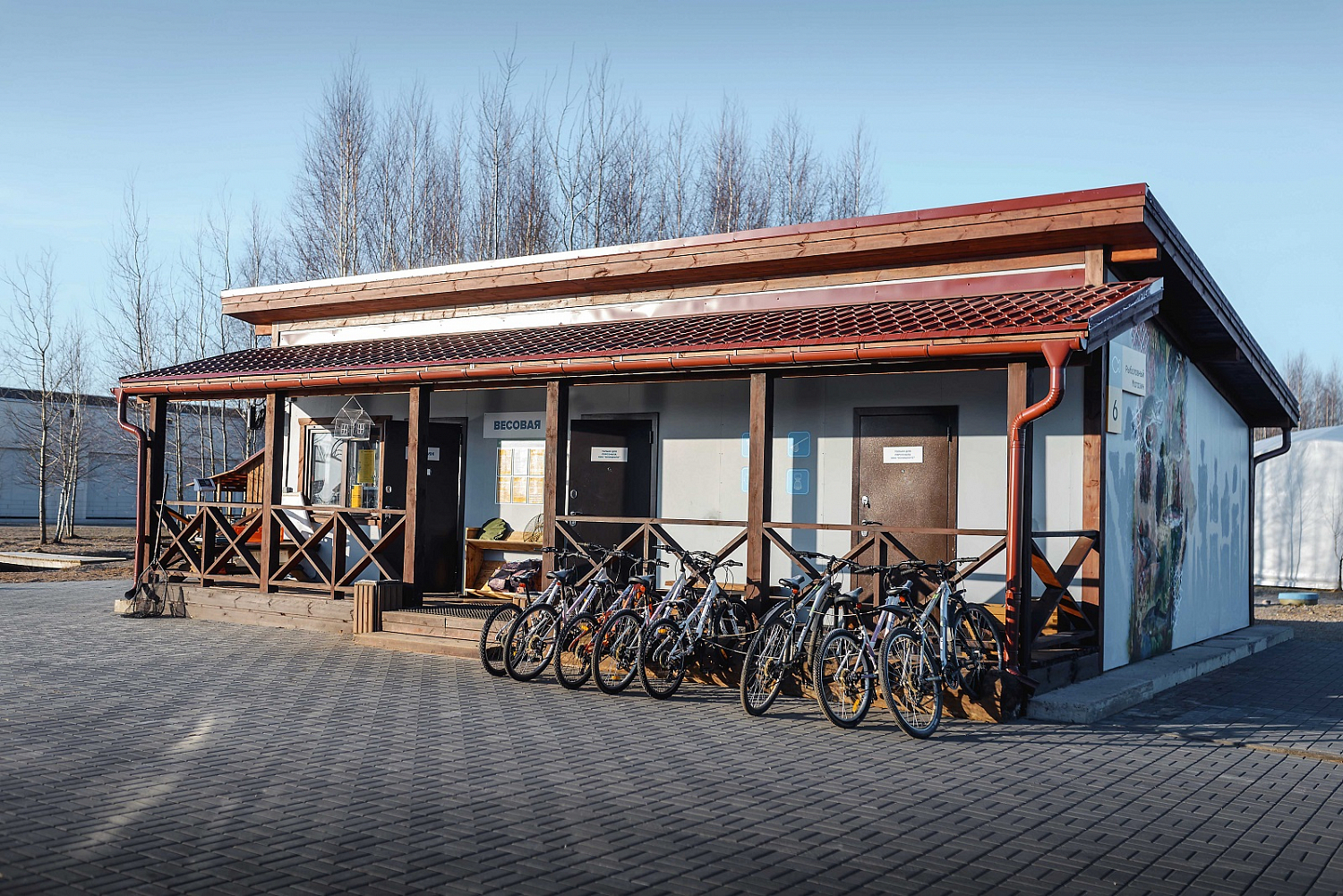 Для желающих отдохнуть в экопарке несколько дней есть отдельный въезд. Все домики условно объединены в одном месте, в центре которого находится зона отдыха с грилем, качелями, открытым огнем по вечерам.