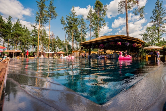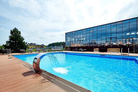 Загородный комплекс «Westa» находится в 30 км от Минска, недалеко от Дзержинска. Это, наверное, единственный санаторий, у которого есть подогреваемый бассейн на улице. Круглый год температура воды поддерживается в 24°С. Бассейн не широкий, зато длина его – 21 м, глубина – до 1,5 м. Что приятно, поплавать можно в любое время года.