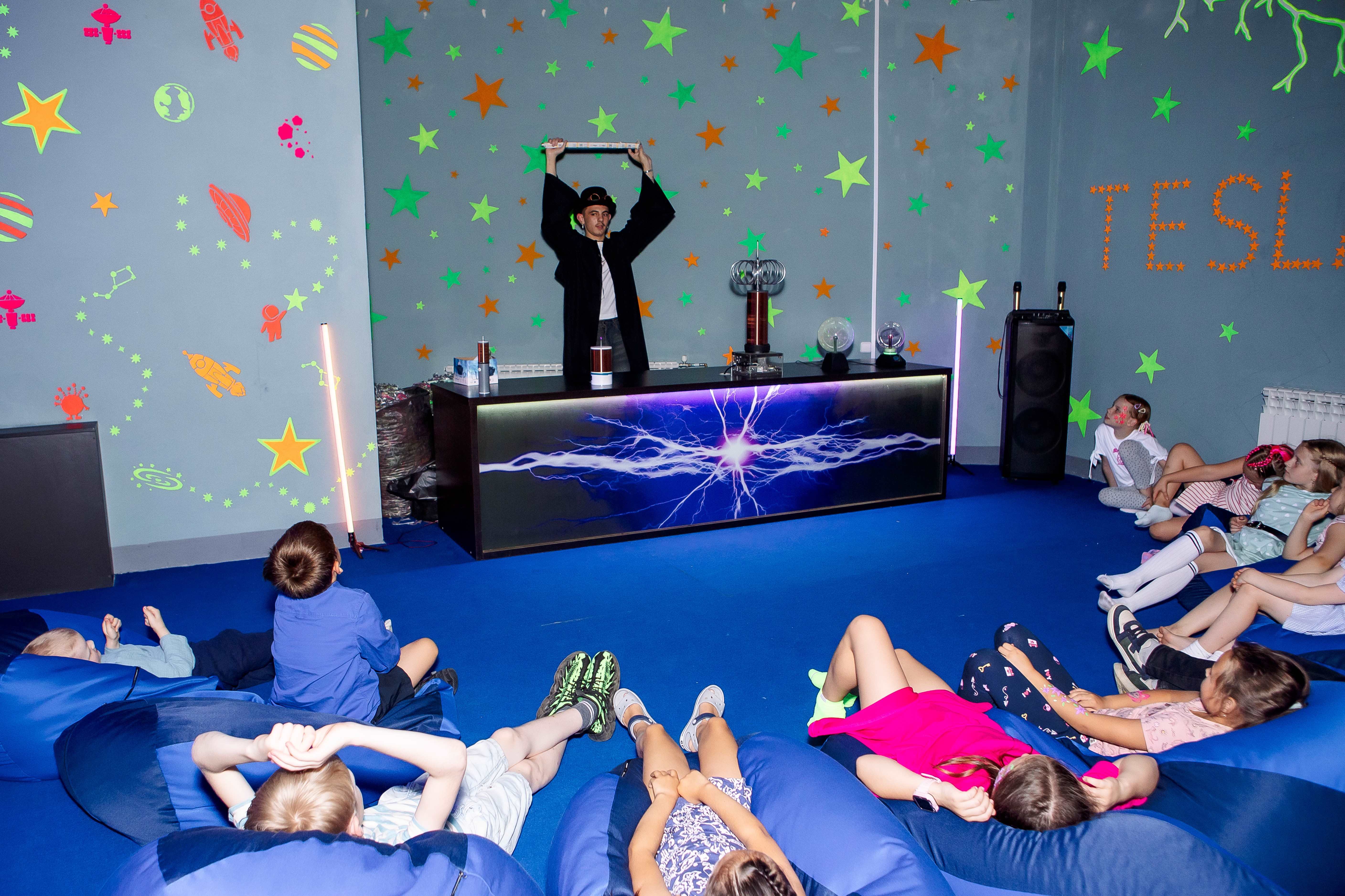 Большое и просторное игровое пространство площадью 750 кв.м. предлагает разнообразные готовые сценарии классного дня рождения: квест «Спаси Стича», лазертаг, шоу молний от Николы Тесла, игровые автоматы. С ребятами работают опытные инструктора-аниматоры, которые создают атмосферу и следят за безопасностью, пока родители общаются и отдыхают в уютных party room.