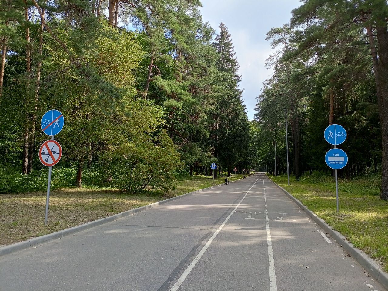 В прошлом году для минчан открыли часть парка со стороны Долгобродской. Тогда всех порадовали веселые дорожные знаки «Увага! Вавёркі!», «Цалуйцеся!» и другие, которые создают позитивное настроение. Здесь все рассчитано на спокойный отдых, неспешные прогулки с детьми и домашними питомцами.