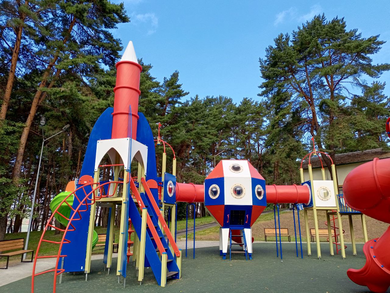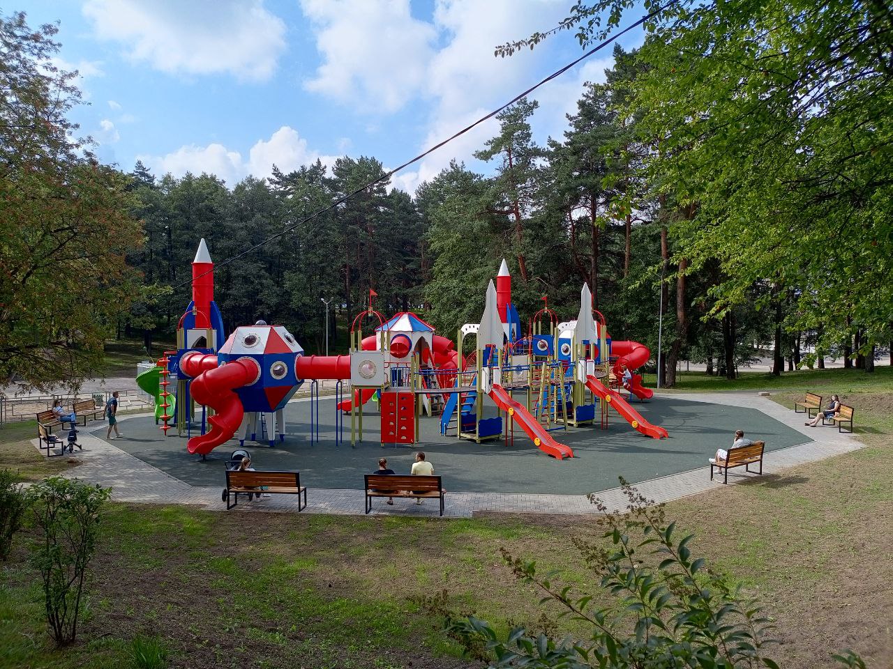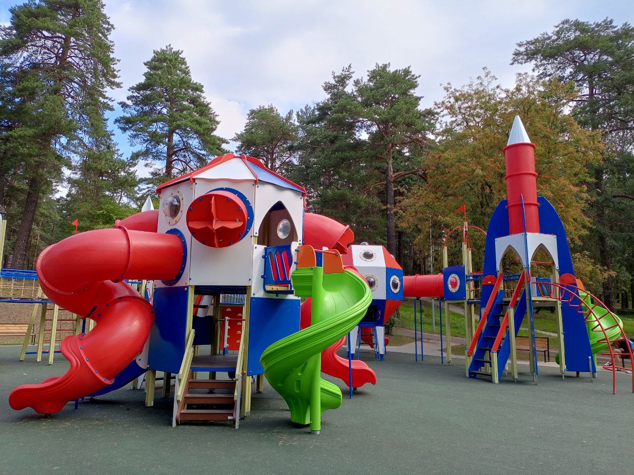 Через дорогу еще ведутся ремонтные работы, однако уже сейчас там можно весело и активно отдохнуть с ребенком. Недалеко от центральной аллеи, на месте бывшего амфитеатра, вы сразу увидите детскую площадку. Игровой комплекс напоминает космические шаттлы и ракеты – именно так их охарактеризовали местные дети.