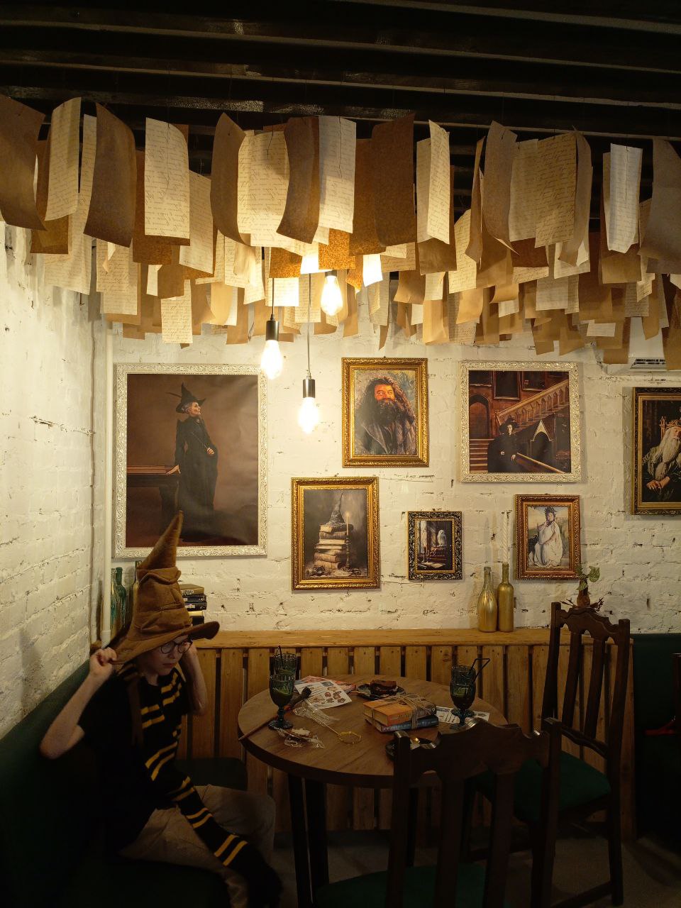 Сама кофейня небольшая, но интерьер хочется рассматривать бесконечно, каждая деталь напоминает о поттериане. В этом также помогают настольные игры по серии и книги. В вечернее время здесь особенно приятно и волшебно. Не верите, заглядывайте как-нибудь и проверьте сами.