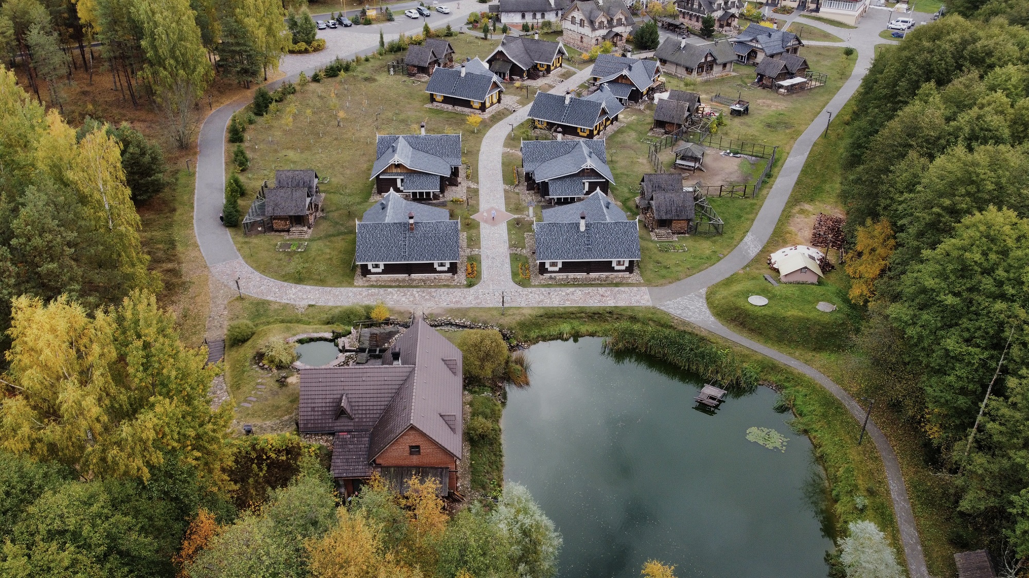 Для проживания несколько вариантов домов в этническом стиле: двухэтажный мещанский на 6 человек и одноэтажный общинный дом на 4 человека. На территории также есть мельница 19 века, смотровая вышка, конюшня, дом самоваров и значков. Для гостей проводят конное шоу, экскурсии, кулинарные мастер-классы.