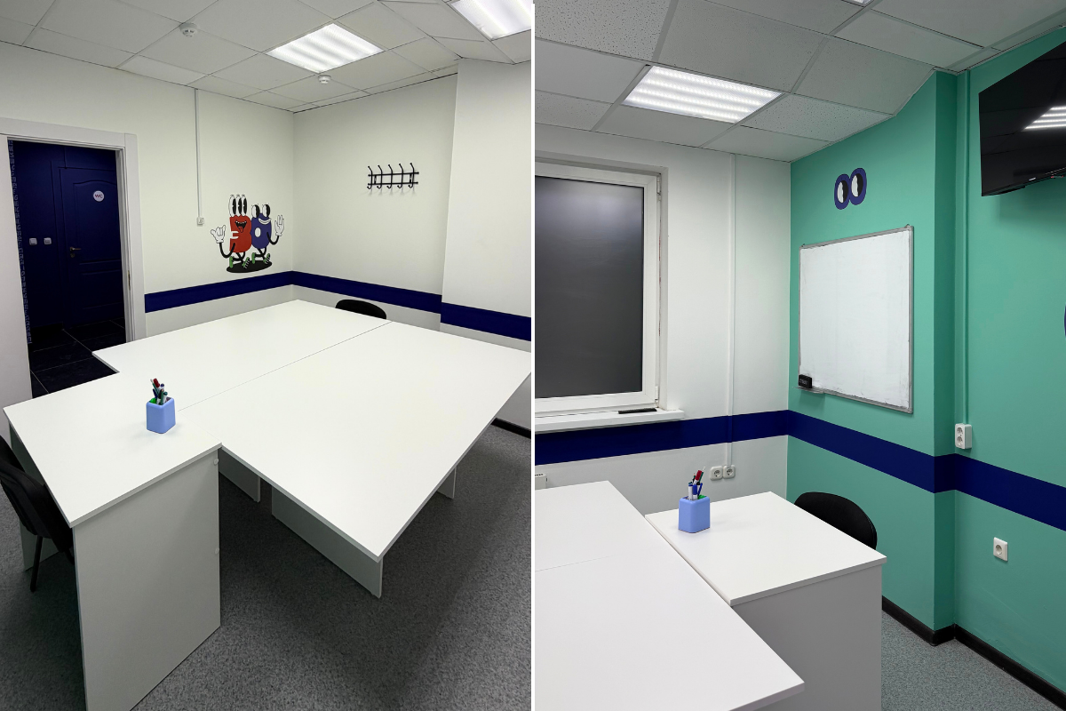 Детские группы по английскому в этих аудиториях формируются по мере набора: если собирается достаточное количество желающих, школа открывает группу под возраст и уровень. А пока для детей доступны индивидуальные занятия и формат «сплит» — обучение в паре.