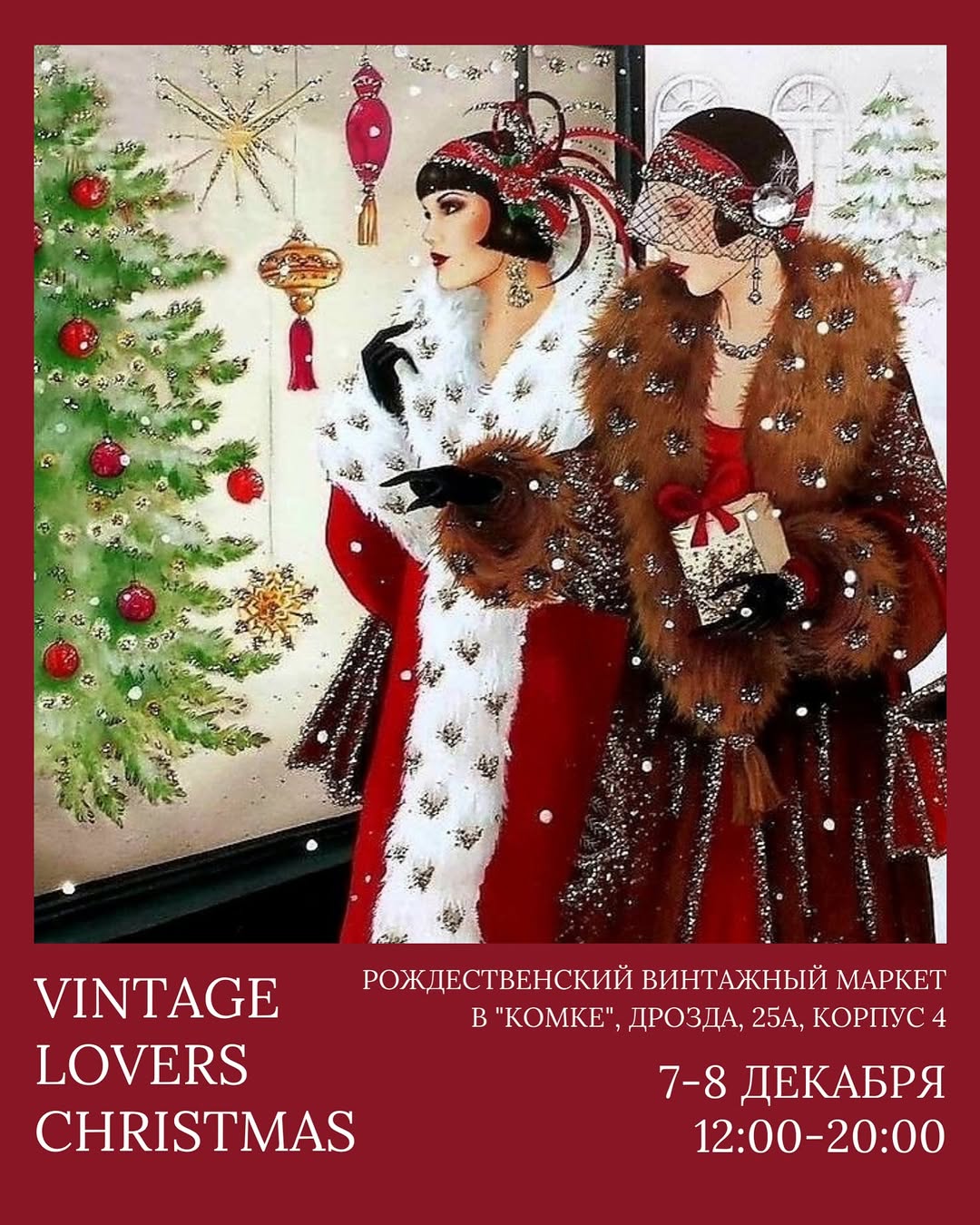 7-8 декабря с 12 до 20 приглашаем всех любителей винтажа за подарками и нарядами к Рождеству и Новому году. Маркет будет включать в себя: галерею винтажной мебели в центре Минска, винтажную одежду, ретро технику, vinyl market, винтажную бижутерию, посуду и предметы интерьера.