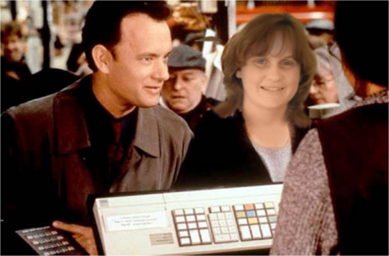 Хэнксом расплачиваюсь в магазине на День благодарения.