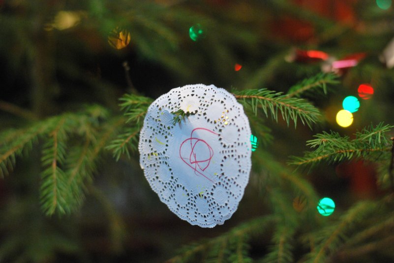 свежая елочка, наряженная парой незамысловатых игрушек. С нашим появлением взбодрился