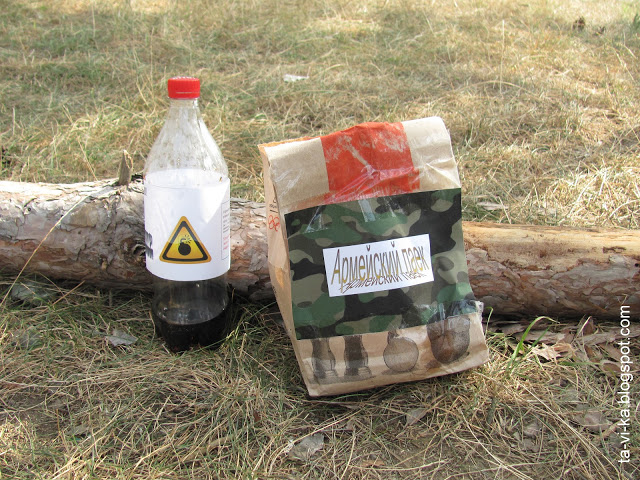 После этого предложите ребятам уже саму миссию: освобождение заложников, побег из плена или спасение засекреченного предмета. Здесь-то и может пригодиться нарисованная карта. Советуем на данном этапе брать тимбилдинговые игры, которые помогут не только решить основную задачу, но и сплотить команду, научить принимать решения и просчитывать ходы. Примеры таких игр: перебраться из пункта А в пункт Б на 5 ногах (если участников 3, то один из них должен будет скакать на одной ноге), объяснение какое-то понятия без слов, размещение на лодке из стульев (ведущий каждый раз уменьшает количество стульев), ориентирование на местности и другие. В завершение обязательно надо устроить перестрелку. Выбирайте наиболее безопасное "оружие": водяные пистолеты, мягкие подушки или бумажные мечи. После этого пригласите ребят за стол, где главным угощением на столе будет солдатская каша.