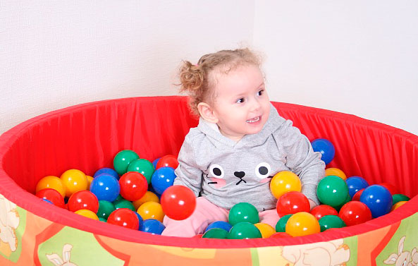 наполнен он не водой, а совсем другой «начинкой» – шариками. В них приятно