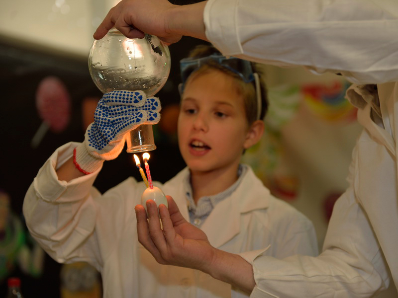 Также в центре проводятся тематические праздники: космическая вечеринка, химическое шоу. Все программы рассчитаны на 30, 45 и 60 минут. К примеру, в центре можно заказать научную солянку. Шоу ведет научный сотрудник-аниматор в течение получаса. За это время ученый проводит опыты с водой, воздухом, электричеством, пеной для слона и многим другим. Более усидчивым детям можно заказать супер-программу - научную вечеринку "Профессор Эйнштейн", которую показывают сразу два аниматора. За час зрители увидят эффектные опыты по физике и химии, научные игрушки и познакомятся со смешными экспонатами оружия.