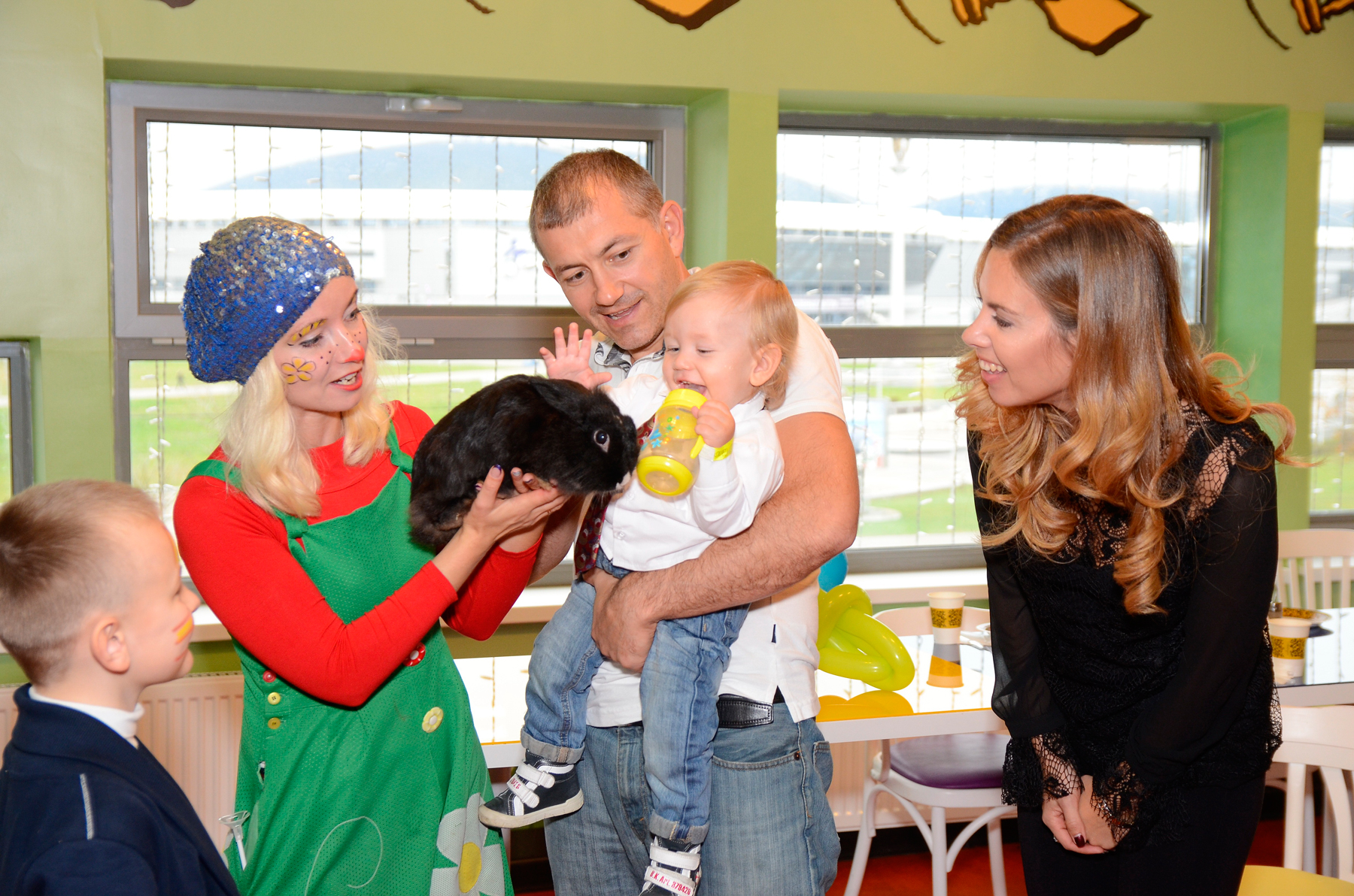 Действительно, в одном из специально предназначенных для проведения праздников нарядных залов, а всего их четыре на первом этаже и огромный ресторан на втором, расположилась компания мам и пап, мирно разговаривающих на свои темы, в то время как шумный рой детей покоряет очередную вершину надувного города. К слову, каждый родитель может оставить свои контактные данные у администратора. Ребенок при желании всегда может обратиться к администратору и позвонить маме или папе.