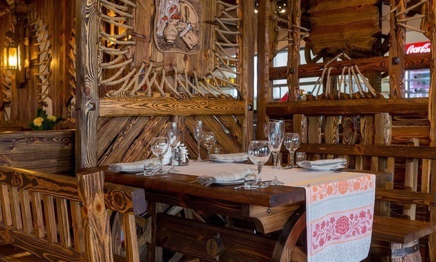Интерьер в белорусском национальном стиле. В кафе имеется 3 зала. Праздники и выпускные для детей и подростков заведение предлагает отметить в 3-м зале кафе, так называемом кафе «Детское», которое рассчитано на 24 посадочных места с соответствующим красочным интерьером. Есть специальное меню с оригинальным оформлением блюд для детей.