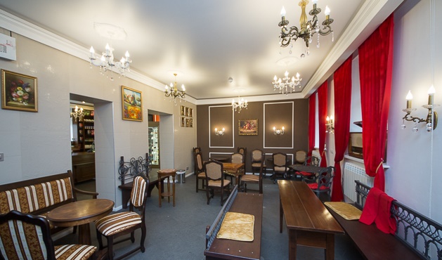 У сети кондитерский появилось свое кафе в центре Минска. Это маленький уютный зал с классической мебелью и массивной деревянной стойкой, баристы в бабочках и фартуках, множество винтажных вещей. Здесь предложат торты, арт-шоколад и десерты ручной работы от профессиональных кондитеров.