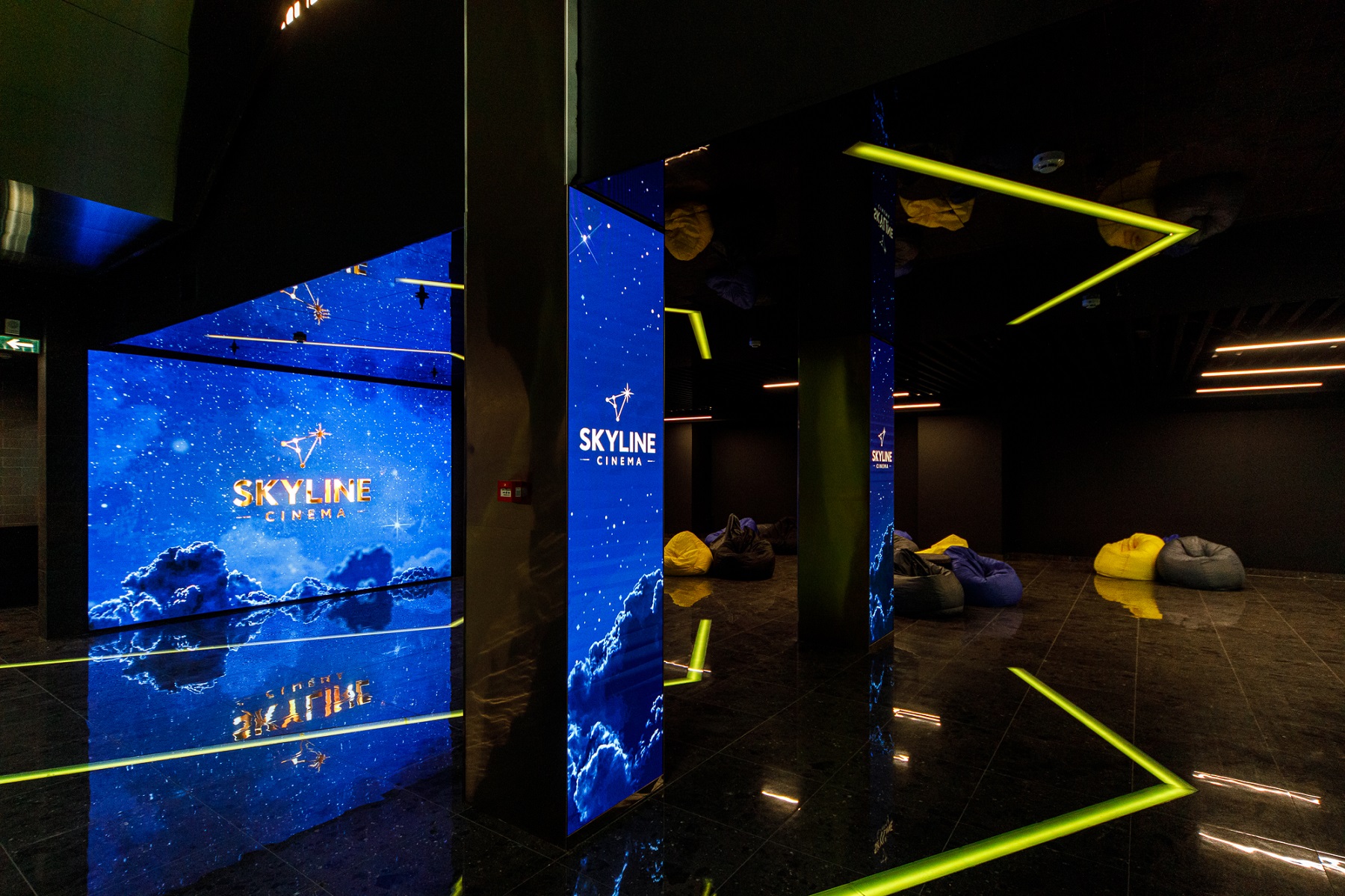 SKYLINE Cinema занимает 3,5 тысячи квадратных метров и 3 этажа. В кинотеатре 7 залов на разное количество зрителей. Кинотеатр оснащён лазерными проекторами 2К и 4К, 3D-системами и большими «парящими» экранами.