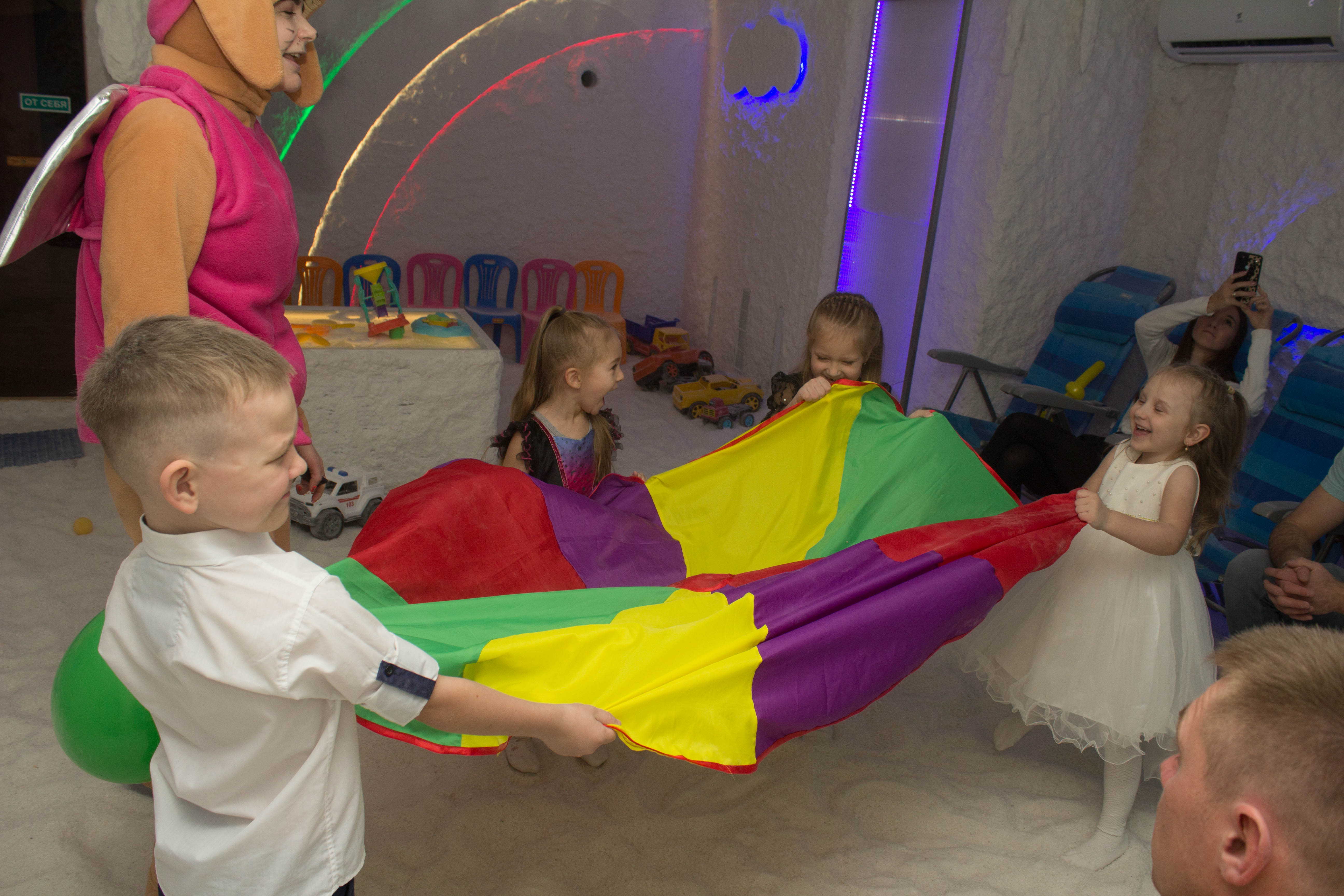 Родители во время праздника могут находиться как в комнате отдыха, так и в самой соляной пещере, при этом принятие участия в анимационной программе вместе с детьми будет только приветствоваться.