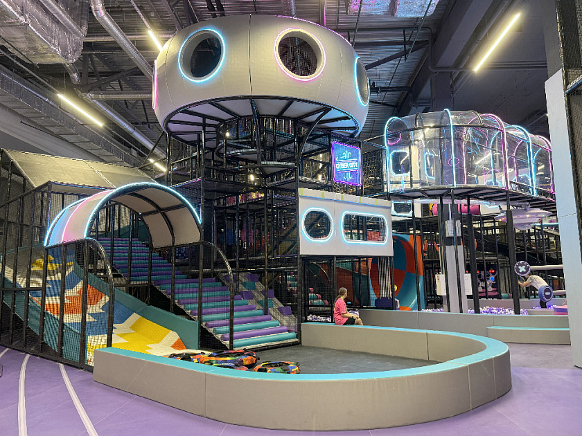Парк занимает два этажа и его площадь Более 3000 м². Более 30 различных аттракционов. Есть малышковая зона для мальчиков и девочек до 4 лет. Для ребят постарше батуты, горки, тюбинг, скалодром, шариковый бассейн и многое другое. Действует единый билет.