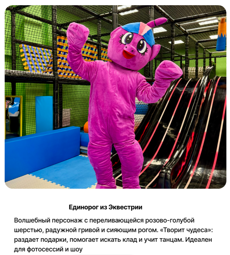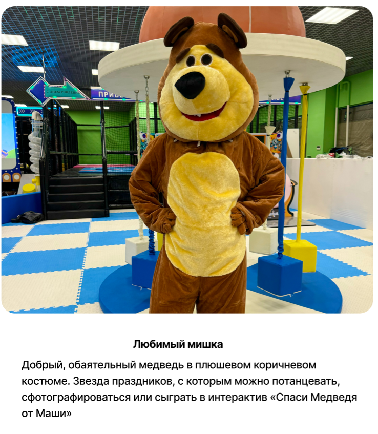 Аниматоры, тематические программы, комнаты для праздников и кафе — всё для веселья без забот!