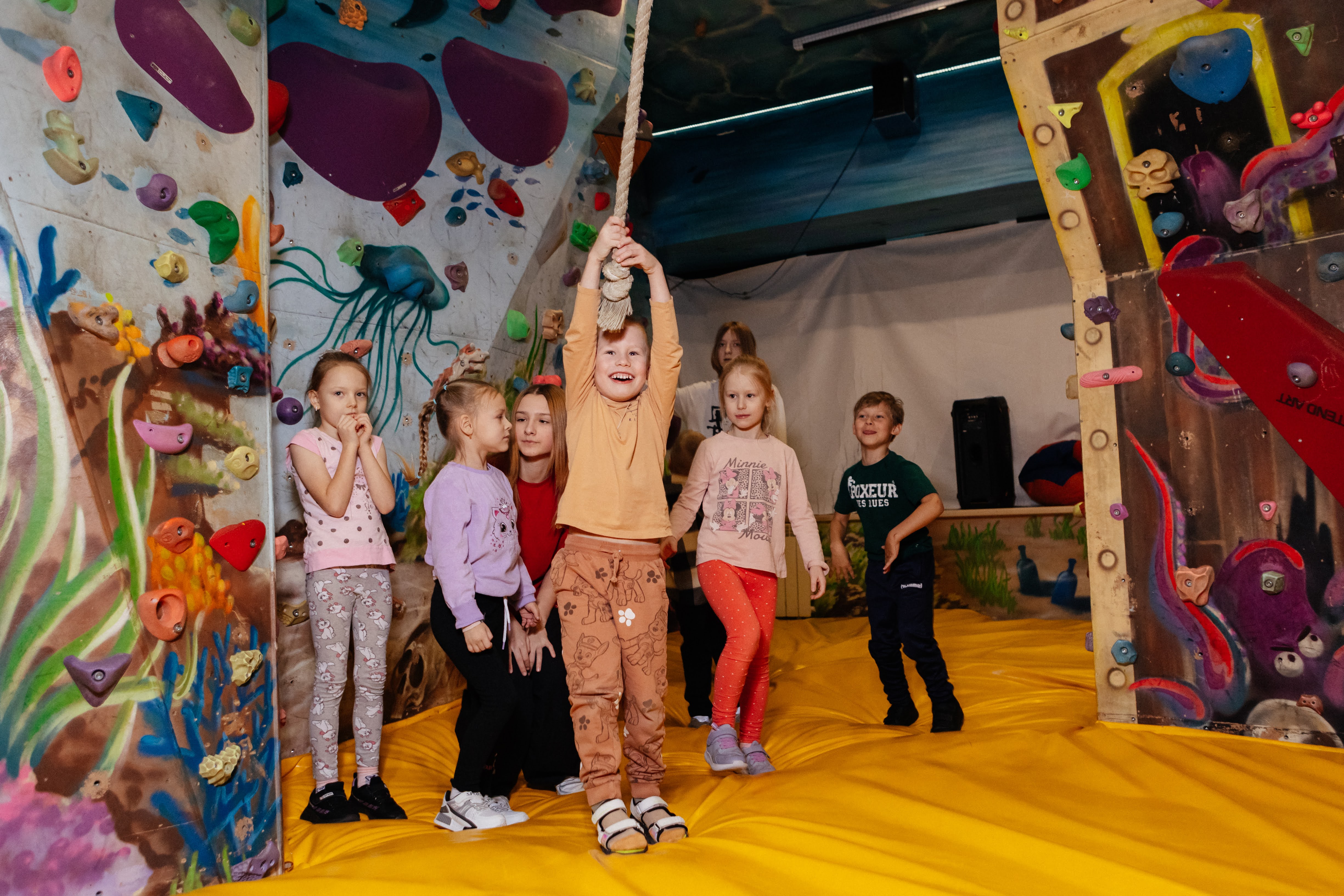 Специально для ребят профессиональные инструкторы по скалолазанию разработали активную скалолазную + спортивную программу, на протяжении которой дети играют в подвижные игры, лазают по скалодрому, получают сладкие призы.