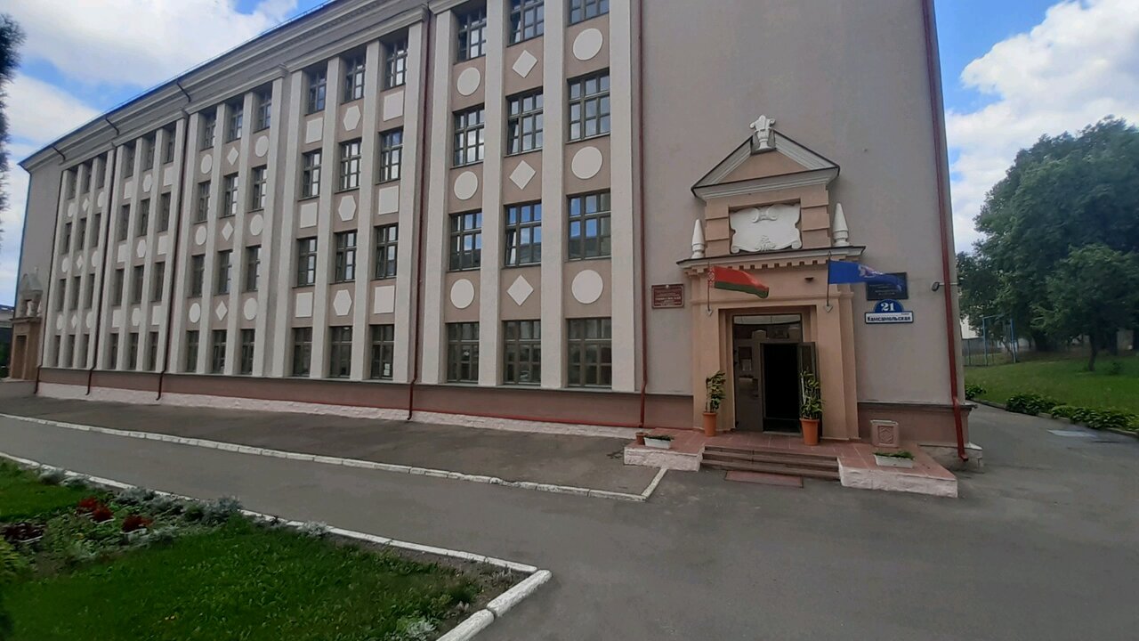 Школа была образована в 1935 году и первоначально находилась на площади Свободы. Она занимала весь 2-й этаж и 2 комнаты на 1 этаже маленького 3-х этажного здания. В 1945 году школа переехала в 3-х этажное здание, которое стояло на пересечении улиц Я. Купала и нынешнего проспекта Независимости, там, где теперь находится магазин «Хлеб» напротив Цирка. В 1950 году школа переехала в новое 4-х этажное здание по улице Комсомольской. Но не только адрес меняла школа, она меняла и своё название. С 1935 года - СШ № 42 мужская гимназия им.Белинского (ученики её называли Гвардейская непромокаемая).