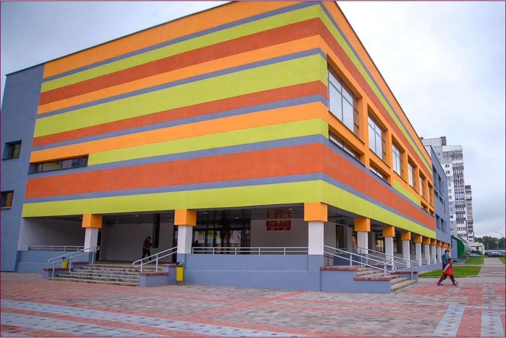 В проекте школы удалось реализовать новые решения, которых в прежних школах не было: трехсветный внутренний двор-атриум с лестницей, актовый зал с амфитеатром и лекционная, вузовская аудитория. Дополнением к школе идет бассейн.