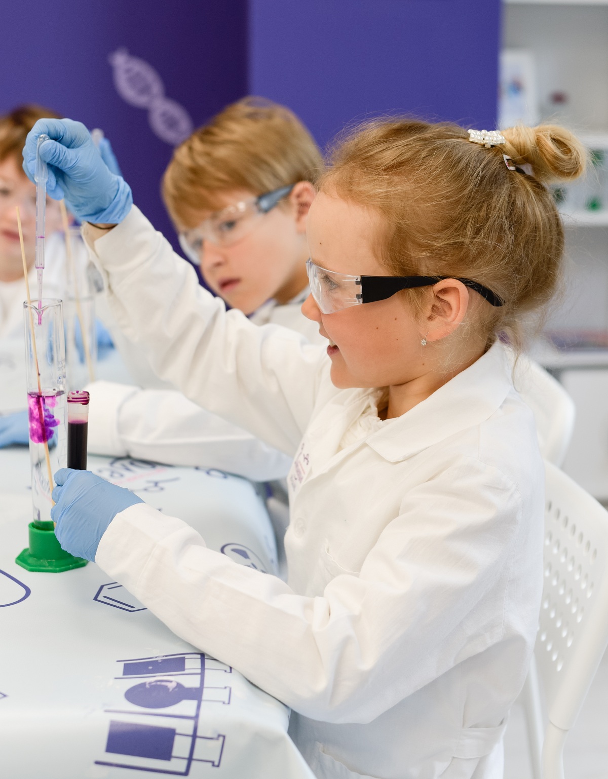 Каждый участник получает возможность почувствовать себя ученым: одеть халат и защитные очки, смешать реактивы на настоящем лабораторном оборудовании.