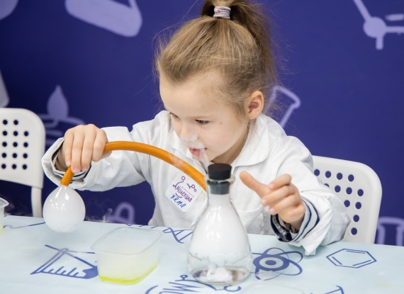 «Наука для малышей» - мастер-класс для самых маленьких научных сотрудников от 4 лет создан с учетом возраста. Конечно, занятие проходит при участии родителей, но оставляет у ребенка самые яркие эмоции.